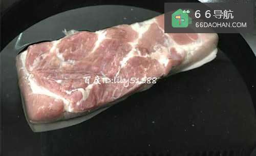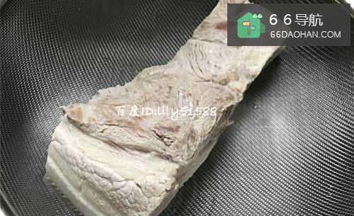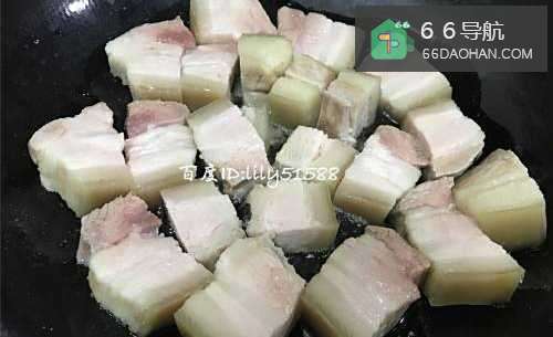6烧热锅放油煎五花肉。