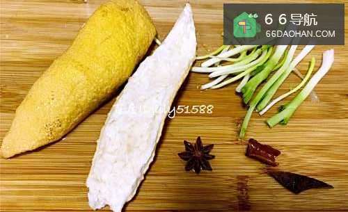 4将辅料桂皮,干柚子皮,八角,葱白准备好备用。