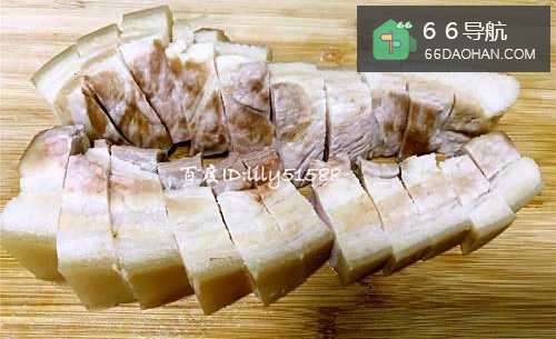 5五花肉沥水1个时之后,切成小块,如下图;