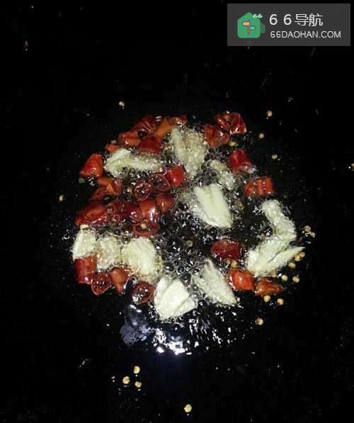 6加适量酱油和花椒粉,少许盐炒至6成熟