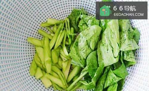 把芥兰菜的老叶择掉,在流水下冲洗干净。
