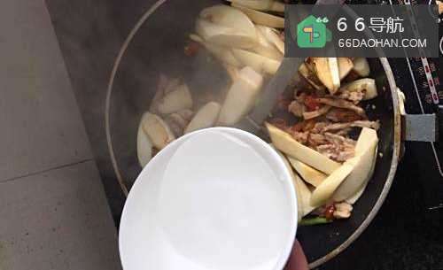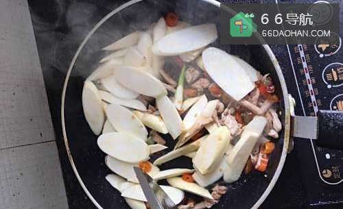 5接着,将高笋也一起倒进去炒,再加入适量的盐。