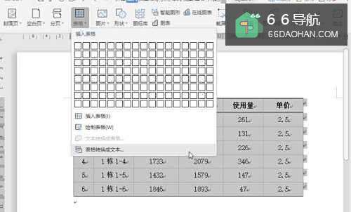 3在插入表格功能列表中,选择【表格转换成文本】;