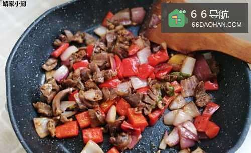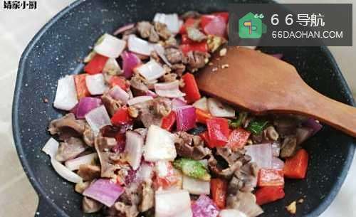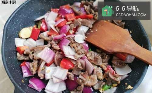 做这道菜一定要旺火快炒,才能让鸡胗口感更滑嫩。