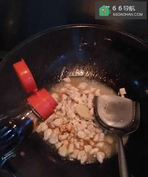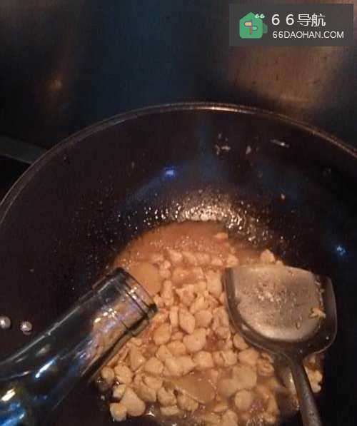 5再在锅中加入适量的料酒,去掉鸡肉的腥味。
