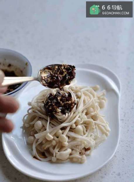 金针菇焯水后,把干红辣椒油炸后再斩碎成辣椒碎用来调制口感酥脆焦香,用味极鲜、陈醋,香油和香油做成味汁,这样调制的金针菇味道酸辣适口,极具诱惑。