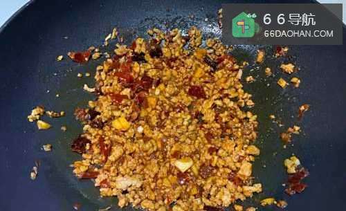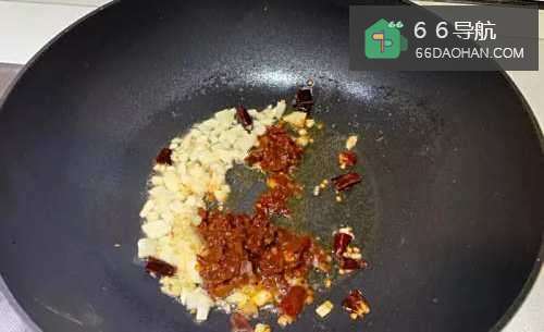 2油热入干辣椒葱白姜蒜末等爆香,加入豆瓣酱炒香
