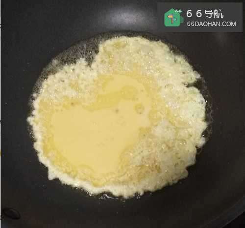 2锅烧热,倒点油,油温大概7分,倒入鸡蛋,之后捞出碗里备用