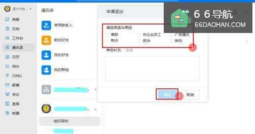 4在“申请退出”界面,选择【退出原因】,点击【确定】即可;