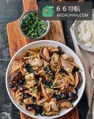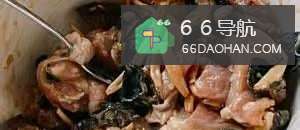 3用一个大碗装鸡肉,将木耳、香菇、金针菜、水、食用油、麻油、蚝油、糖、盐、胡椒粉放入碗中搅拌,至鸡肉充分吸收液体即可。