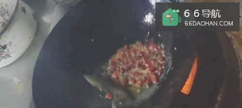 4然后放入蒜沫,姜丝和剁椒,将辣椒炒出红油。