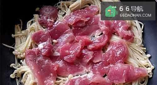 2金针菇切去根部,洗净后剥开放入锅中,盖上锅盖,中小火闷煮至释出水份。