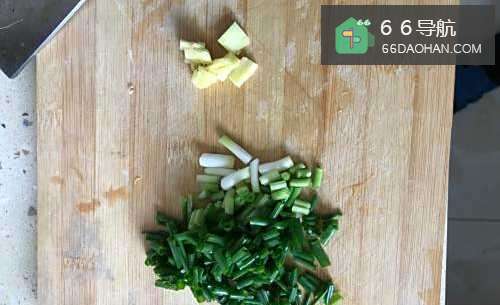 2准备好新鲜的姜、葱,将姜切成姜片,将葱切成葱花,备用,具体的量根据个人喜好选择。