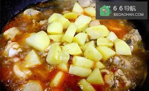 10放入土豆和鸡肉一起再烧8分钟,待土豆熟了之后,放入小葱,加入少许盐,蚝油调味,将鸡肉翻炒均匀,装盘。