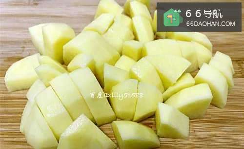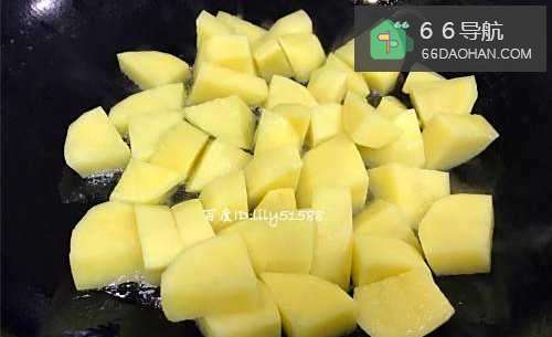 6烧热锅放油,把土豆放入锅里炒断生后,倒出来备用。