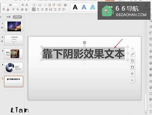 在编辑PPT时,为了让观赏效果,需要对文本设置效果,那应该怎么制作呢?本经验介绍在WPS PPT应用中,如何制作靠下阴影效果文本的操作方法。