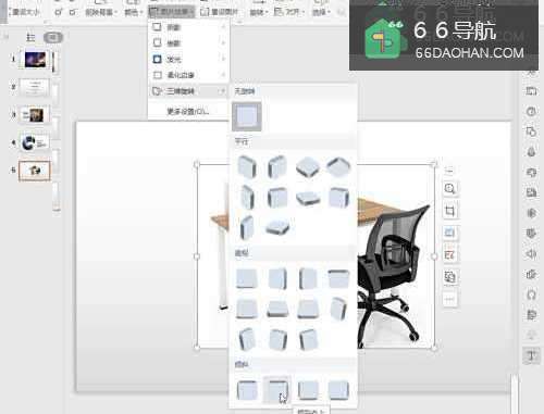 4在“三维旋转”列表中,选择【倾斜】——【倾斜右上】即可;