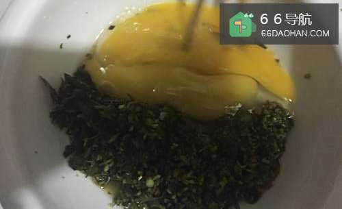 3然后用筷子把鹅蛋和椿芽一起搅拌均匀,如图。