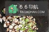 10锅里放入适量油烧热放入五花肉加入姜末,炒变色加入香菇、香葱炒;
