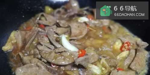 4锅热后下油,六七分热时下猪肝翻炒至变色
