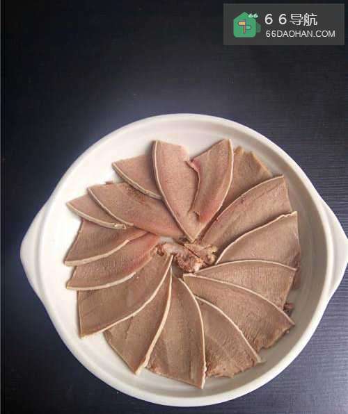 8猪舌切薄片,摆盘。