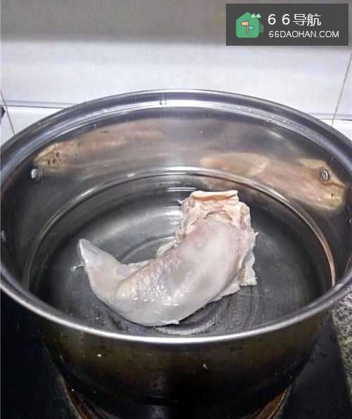3煮锅倒入适量清水,放入猪舌,用大火煮25分钟。