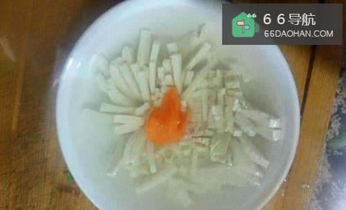6将果汁倒入碗中,将豆腐放入,加一点盐,就好!
