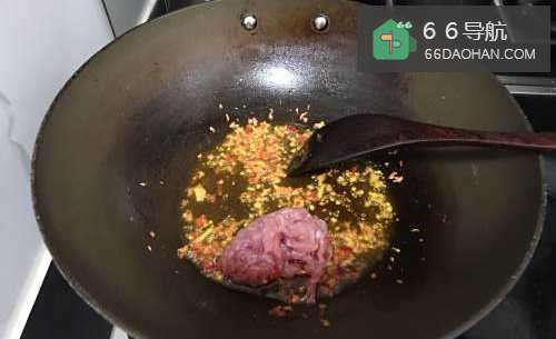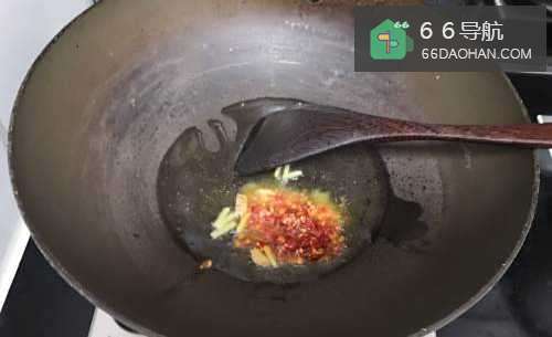 4油热后,加入生姜和豆瓣酱进行爆香。