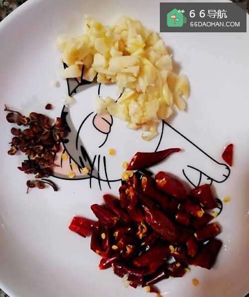 5热锅烧油后,依次加入花椒、干辣椒、蒜末,煸香后加入炒好的肉片翻炒,待肉片煸炒入味后加入土豆片翻炒入味后,依次加入适量辣椒面,食用盐、味精、孜然,翻炒均匀后装盘。