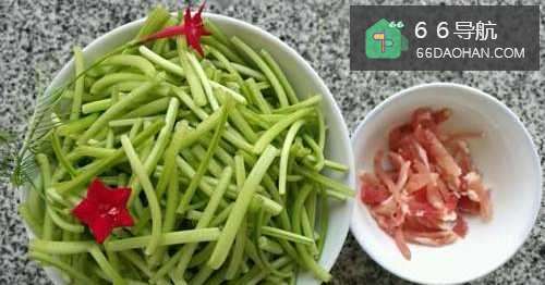5肉变色,放番薯藤,快速翻炒,加盐,鸡精。
