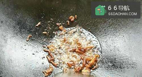锅烧热,倒油,放入肉丝,快速翻炒。