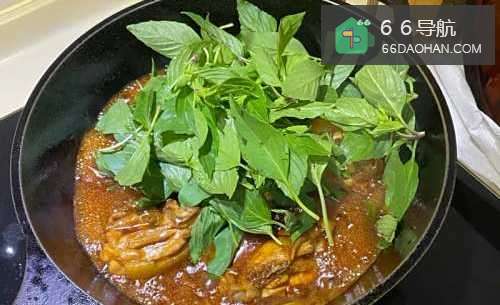 5收汁到半干后,就加入香菜一起炒