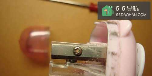 5 然后,用小起子把卷笔刀上的螺丝拧下来,这样就可以把卡住的笔芯取下来了,如下图所示。