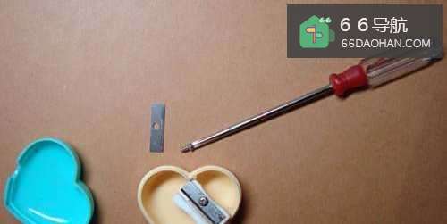 把需要修理的卷笔刀和工具准备好,这里需要用到小起子,铅笔,如下图所示。