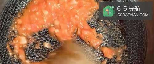 4热锅放油,加入西红柿中火翻炒,炒到西红柿融化出汁。