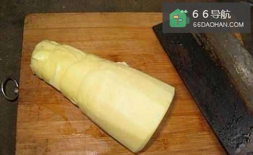 将买回来的竹笋剥去外壳,留下里面的笋子