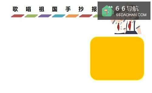 首先,用彩笔在白纸上,画出含有立体感小长方形框架并涂上颜色,在白纸的顶部靠左写上字【歌唱祖国手抄报】的标题,如下图所示。