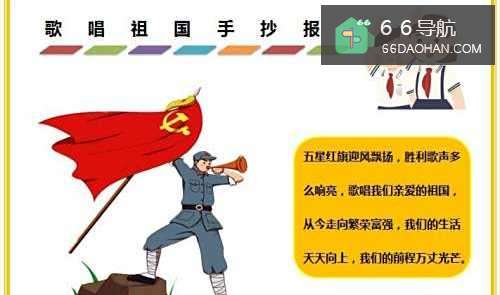 5最后,在【歌唱祖国手抄报】标题的下方左侧处,画出歌唱祖国相关内容及外框线,如下图所示。