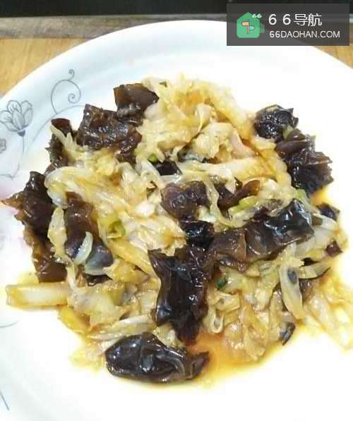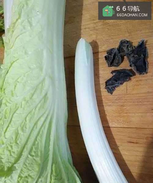 做这道菜,要准备白菜、木耳、葱。