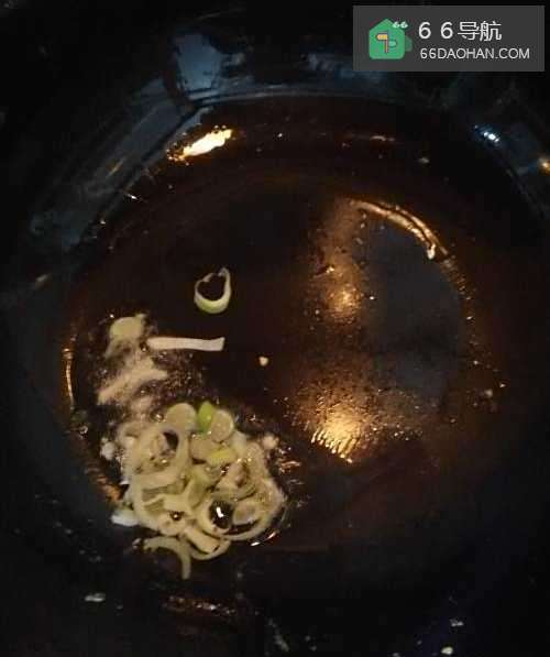 3在锅中放入花生油烧热后,将葱放入锅中炝出葱香味。