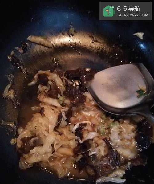 8将白菜丝和木耳丝搅拌均匀后,就可以出锅了,这道菜清香爽口,好吃不腻,是一道下饭菜。