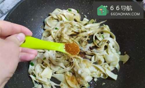 4炒到杏鲍菇发软,继续翻炒至杏鲍菇比较干