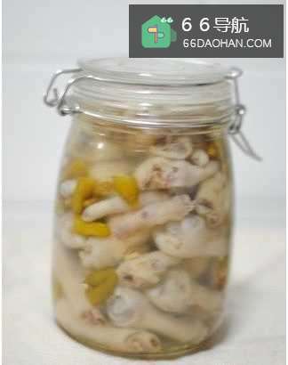66将凉透的鸡爪放到泡椒水里,盖上盖子,入味。