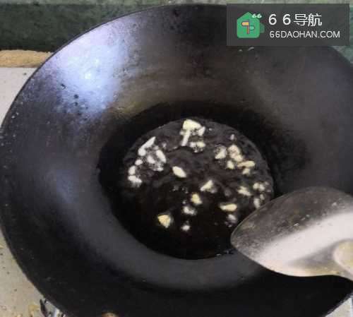 5油烧热后,就可以加入蒜爆香,可以适当的加点酱油。