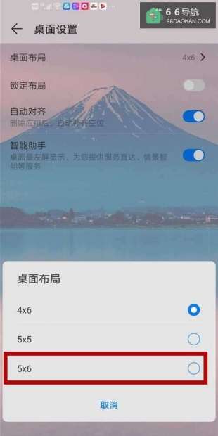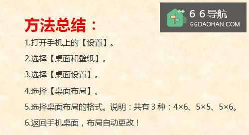 6返回手机桌面,布局自动更改!