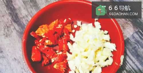 4起锅热油,先放辣椒和大蒜小火煸出香味。
