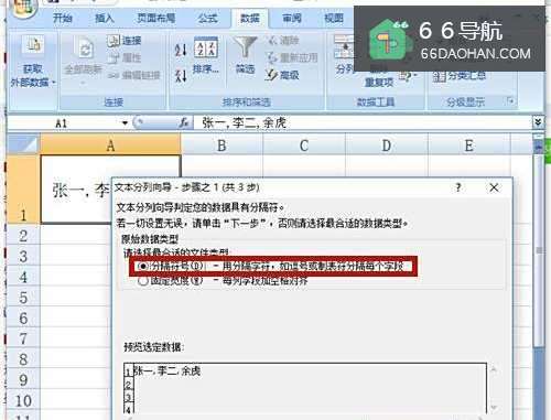 3弹出对话框,选择【分隔符号】,点击【下一步】。