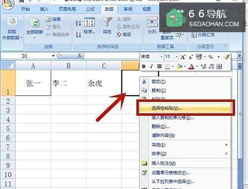 8选中一个新单元格,右击鼠标,在弹出选项中,选择【选择性粘贴】。
