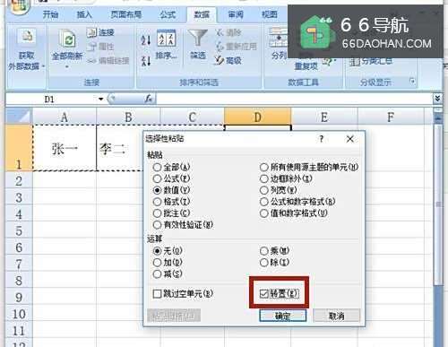9弹出"选择性粘贴"的对话框,勾选【转置】选项。