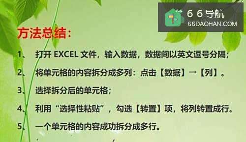 有时候,为了节省时间,我们希望将EXCEL的一个单元格的内容拆分成多行,大家都知道拆解成列很简单,但是怎么拆解成行呢?也不用着急,我们只要通过2大步骤便能成功拆分了1、将单元格的内容拆成列;2、用【选择性粘贴】,勾选【转置】,将列粘贴成行。